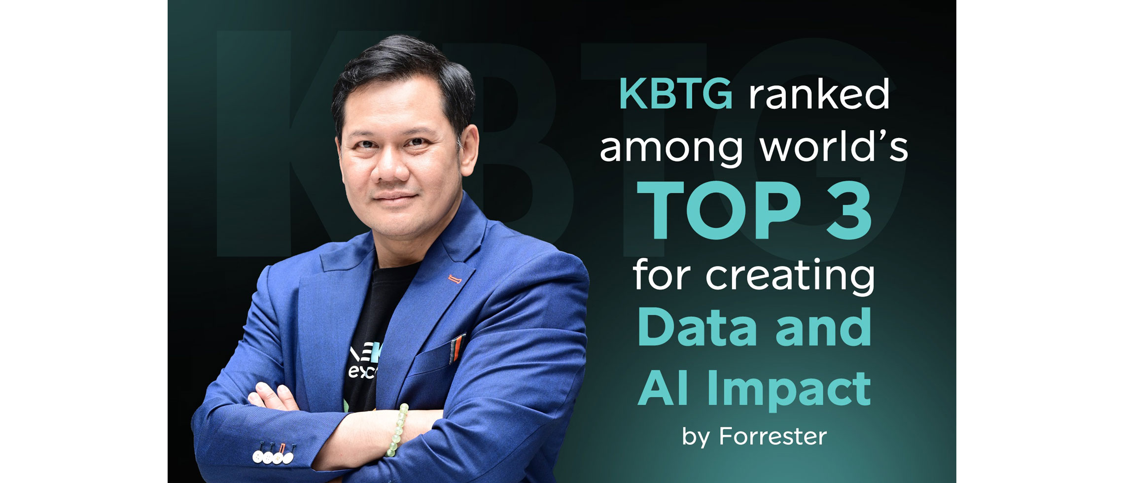 Recently, KBTG was ranked among the world’s top three organizations for effectively leveraging data and artificial intelligence (AI) to generate measurable and tangible positive impacts across business operations, customer service, and sustainable organizational development. This recognition came from Forrester, one of the most influential research and advisory firms in the world, through its Data & AI Impact Award 2025, which evaluated more than 2,500 enterprises worldwide. Notably, KBTG stands out as the only company from Thailand and Asia to achieve a top-three global score.