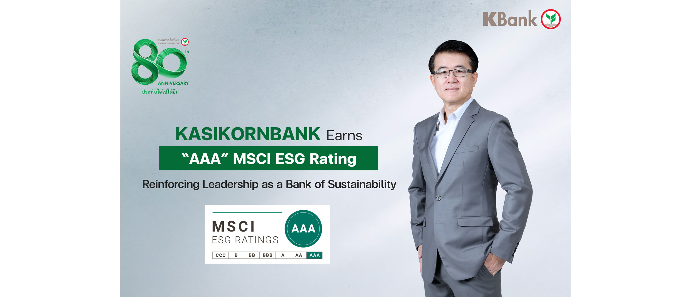 Mr. Chongrak Rattanapian, President of KASIKORNBANK (KBank), said that in 2025, the Bank received an evaluation from a globally recognized and reputable organization specializing in ESG indices. KBank was awarded an MSCI ESG Rating of “AAA,” the highest possible rating, by MSCI ESG Research. This achievement reaffirms “Bank of sustainability”, with operations in line with international standards.