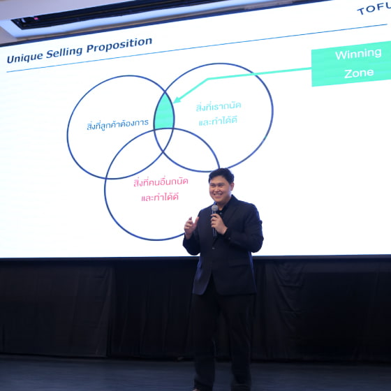 เบื้องหลังความสำเร็จของธุรกิจน้ำเต้าหู้ คุณสุรนาม ได้แชร์เรื่องราว การคิดต่าง “หากเลือกแข่งในตลาดนมถั่วเหลืองเราอาจเป็นเบอร์ 7-8 จึงเลือกสร้าง Category ใหม่ให้แตกต่างจากเดิม” อย่างจุดแข็งของโทฟุซัง คือ ไม่ผสมนมผง และน้ำมัน ซึ่งต่างจากแบรนด์อื่นๆ เมื่ออยู่ในตลาด New Category มีจุดยืนของแบรนด์ที่ชัดเจน พร้อมขยายไลน์สินค้าที่ตอบโจทย์โมเดิร์นเทรดมากขึ้น เพิ่ม Market Share ทำให้แบรนด์กลายเป็นเบอร์ 1
