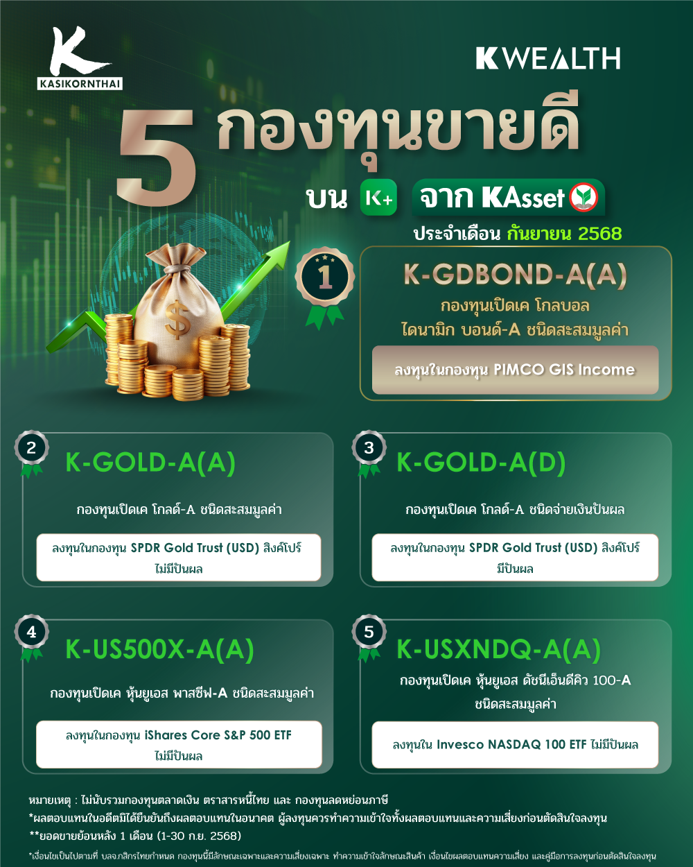 K-GDBOND-A(A) ขึ้นอันดับ 1 กองทุนขายดีจาก KAsset บน K PLUS ประจำเดือน กันยายน 2568