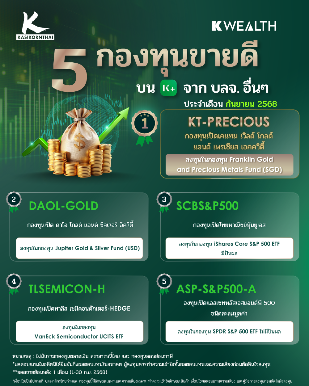 KT-PRECIOUS ขึ้นอันดับ 1 กองทุนขายดีจาก บลจ.อื่นๆ บน K PLUS ประจำเดือน กันยายน 2568