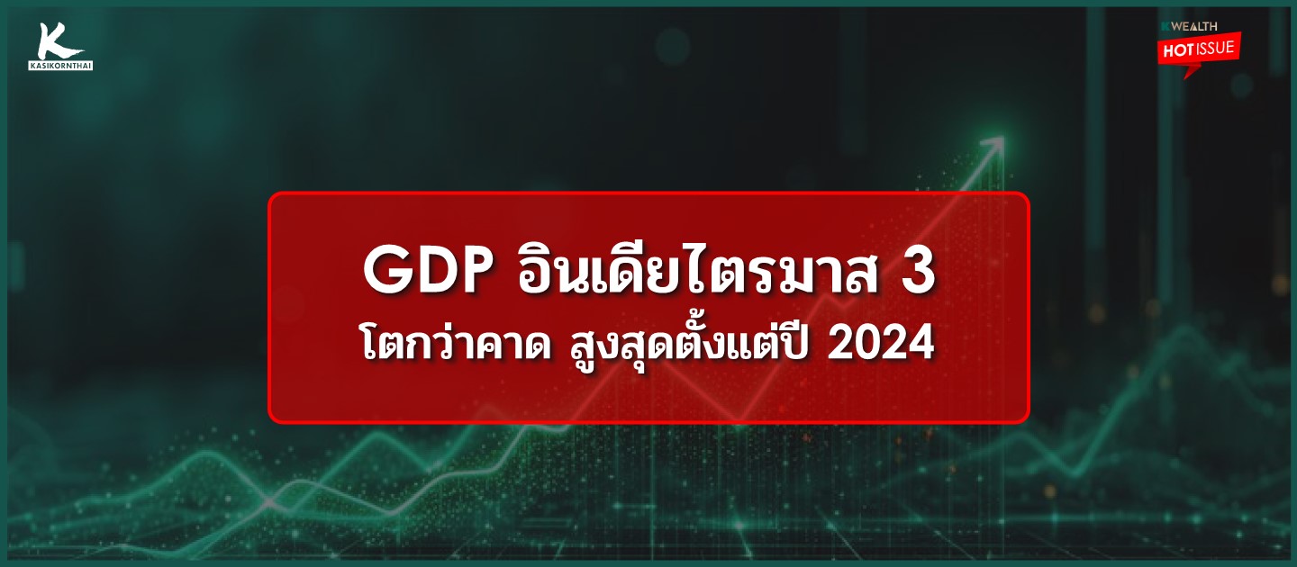 วันที่ 1 ธ.ค. 2568 อินเดียประกาศตัวเลข GDP ไตรมาส 3 ขยายตัว 8.2% (YoY) มากกว่าคาดการณ์ที่ 7.4% (YoY) นับเป็นอัตราการเติบโตที่สูงสุดตั้งแต่ไตรมาส 1 ปี 2024