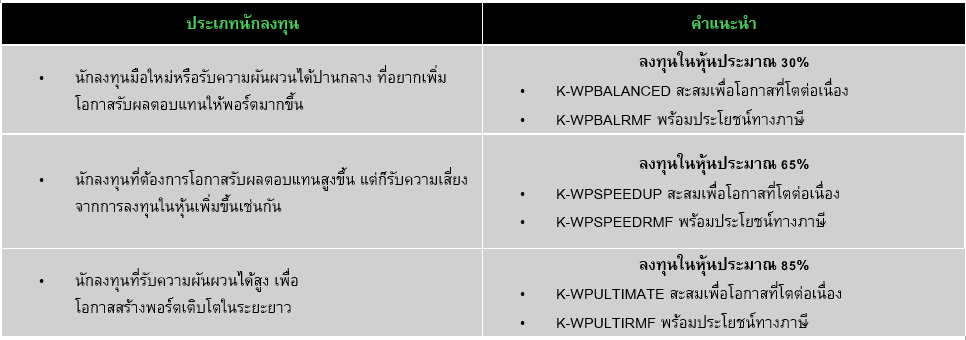 - K-WPBALANCED, K-WPSPEEDUP: ความเสี่ยงกองทุนระดับ 5