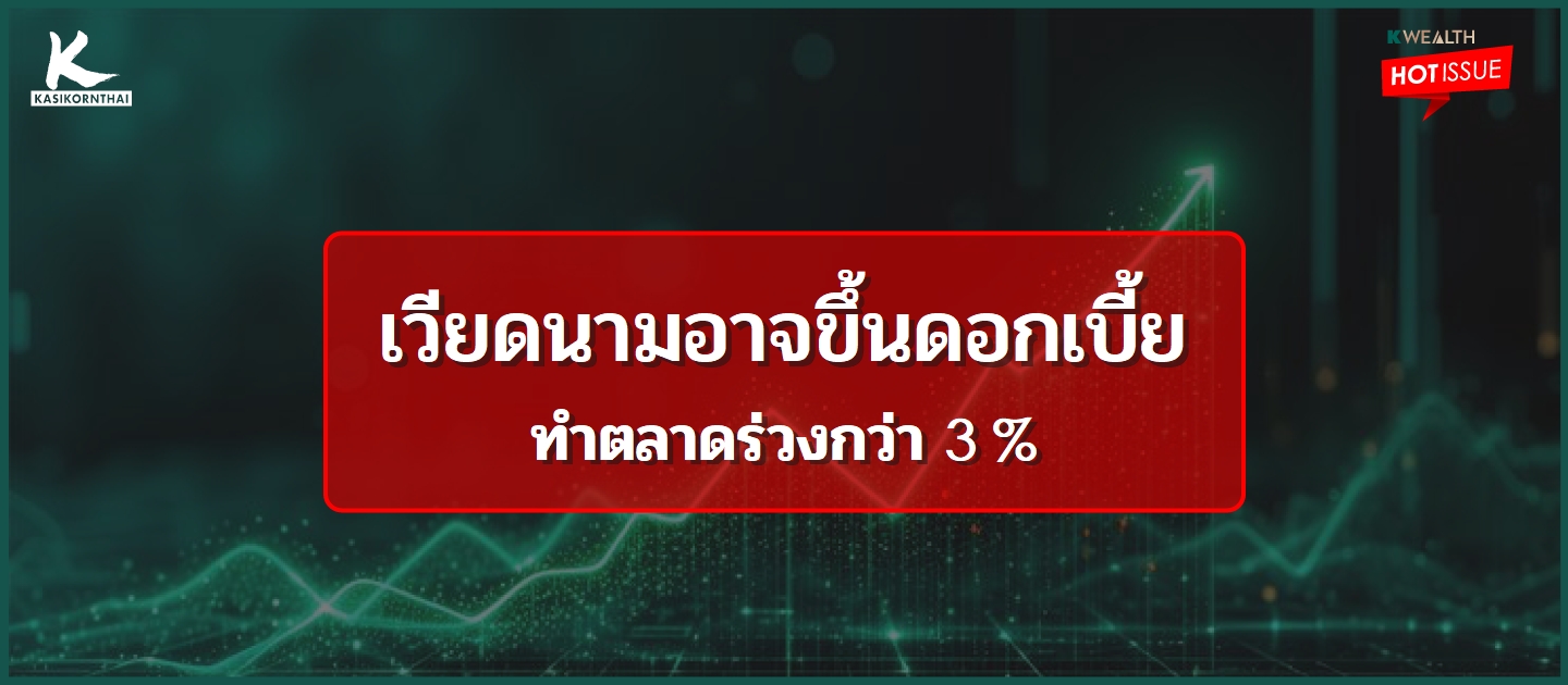 12 ธ.ค. 68 ในระหว่างวันตลาดหุ้นเวียดนามปรับตัวลงแรงกว่า 3% เป็นผลมาจากมีข่าวลือในตลาดว่าธนาคารกลางเวียดนามอาจปรับขึ้นอัตราดอกเบี้ย เพื่อดึงเงินทุนจากสินทรัพย์ทางการเงินประเภทอื่นเข้ามาเพิ่มสภาพคล่อง ขณะเดียวกันธนาคารพาณิชย์ได้เริ่มปรับขึ้นอัตราดอกเบี้ยไปแล้ว
