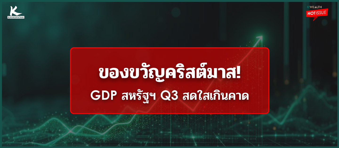 - K WEALTH มีมุมมอง Neutral ต่อหุ้นสหรัฐฯ โดย GDP ที่ออกมาสูงกว่าคาด เป็นปัจจัยบวกต่อความเชื่อมั่นตลาดหุ้นและดอลลาร์ แต่ยังต้องจับตา