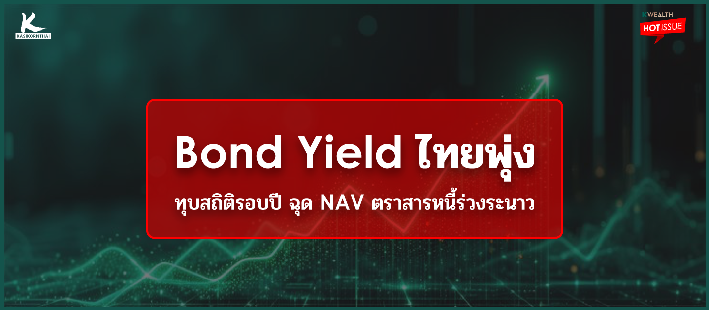 วันที่ 23 มี.ค. 2569 อัตราผลตอบแทนพันธบัตรทั่วโลกพุ่งขึ้นมากตั้งแต่เกิดสงคราม พันธบัตรสหรัฐฯอายุ 10 ปี ปรับขึ้นมา 40bps ขณะที่ของไทยขึ้นมากถึง 50bps ด้าน อัตราผลตอบแทนพันธบัตรไทยอายุ 10 ปี เพิ่มขึ้นแตะ 2.24% สูงสุดในรอบ 13 เดือน จากระดับก่อนหน้าที่ราว 2.08% (20 มี.ค.) และ อัตราผลตอบแทนพันธบัตรไทยอายุ 2 ปี ปัจจุบันอยู่ที่ระดับ 1.41% โดยปัจจัยกดดันมาจาก 3 ปัจจัย