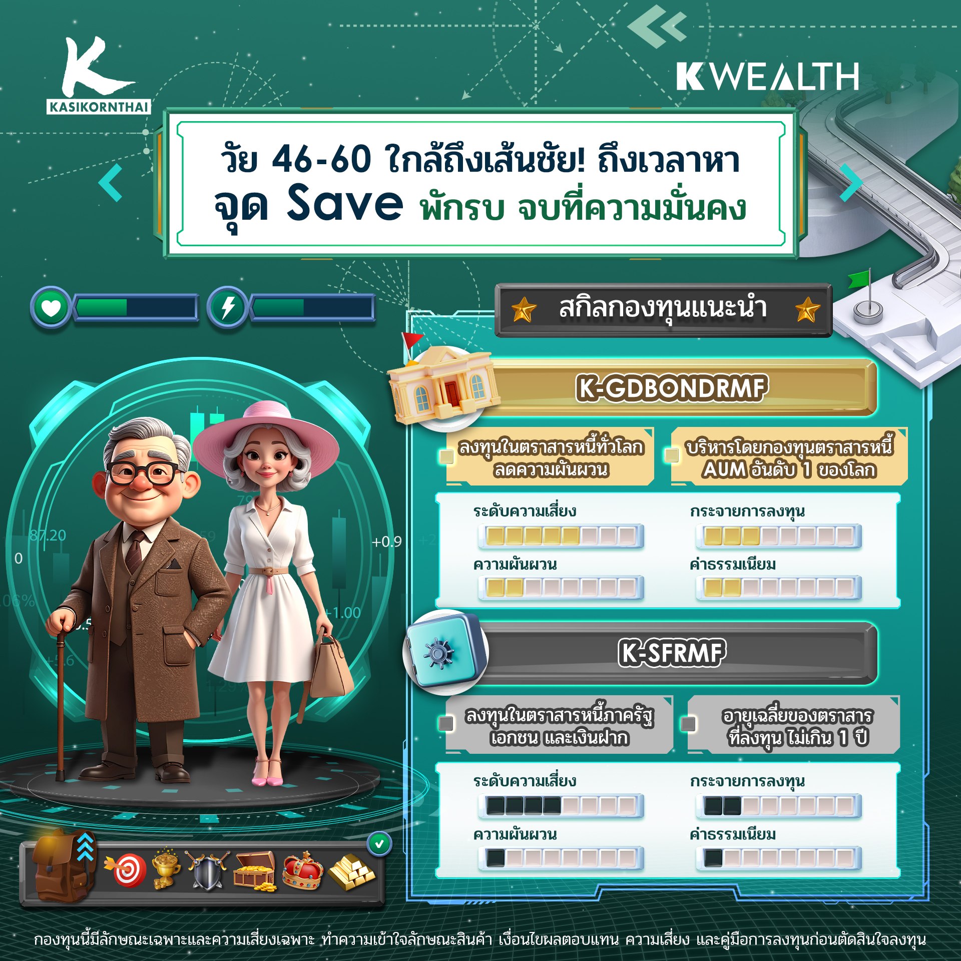 👩🦳👨🦳สำหรับวัยใกล้เกษียณแล้วอายุ 46 ปีขึ้นไป กำลังเข้าสู่ช่วงประคองตัวเข้าเส้นชัยแล้ว ควรลดความเสี่ยงของพอร์ตภาพรวมลง