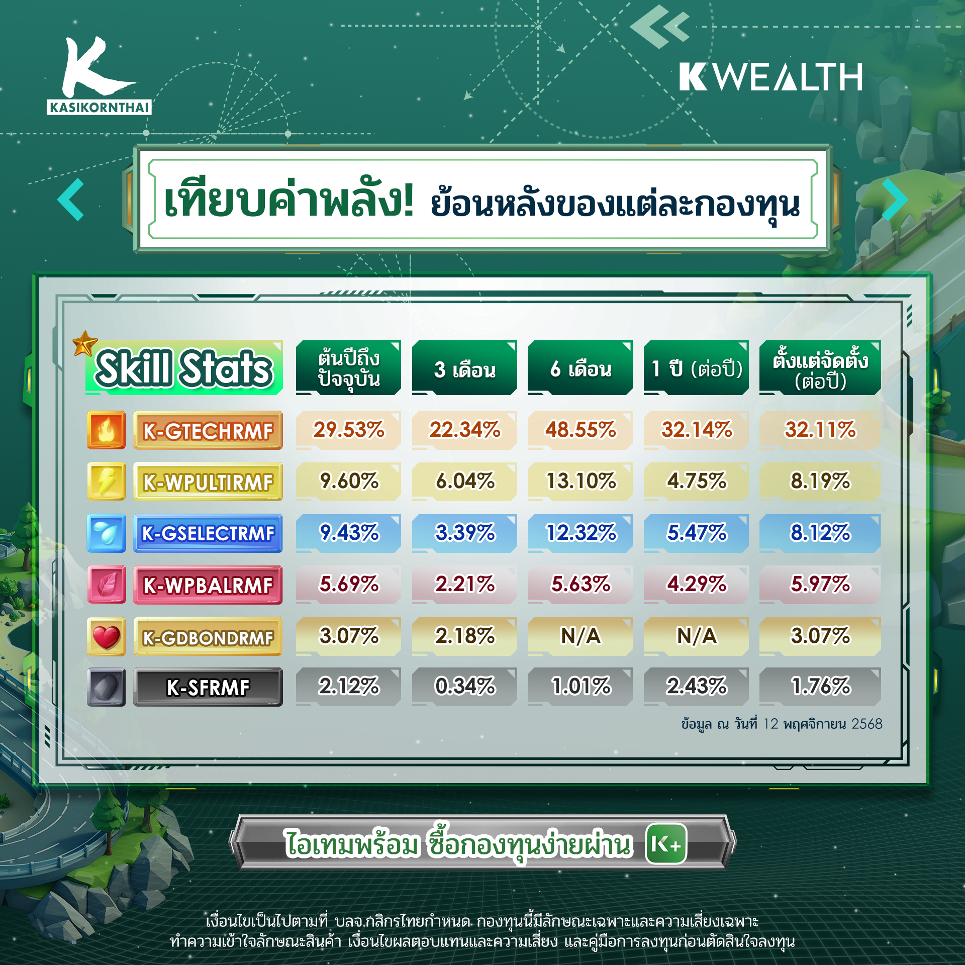 🚀 อัปเกรดสู่อนาคตแนะนำ K-GTECHRMF กองทุนที่เน้นลงทุนในหุ้นเทคโนโลยีทั่วโลก ตามเมกะเทรนด์มาแรงอย่าง AI ซึ่งถือว่าเป็นอุตสาหกรรมแห่งอนาคต มีอัตราการเติบโตสูง เหมาะกับการลงทุนระยะยาว