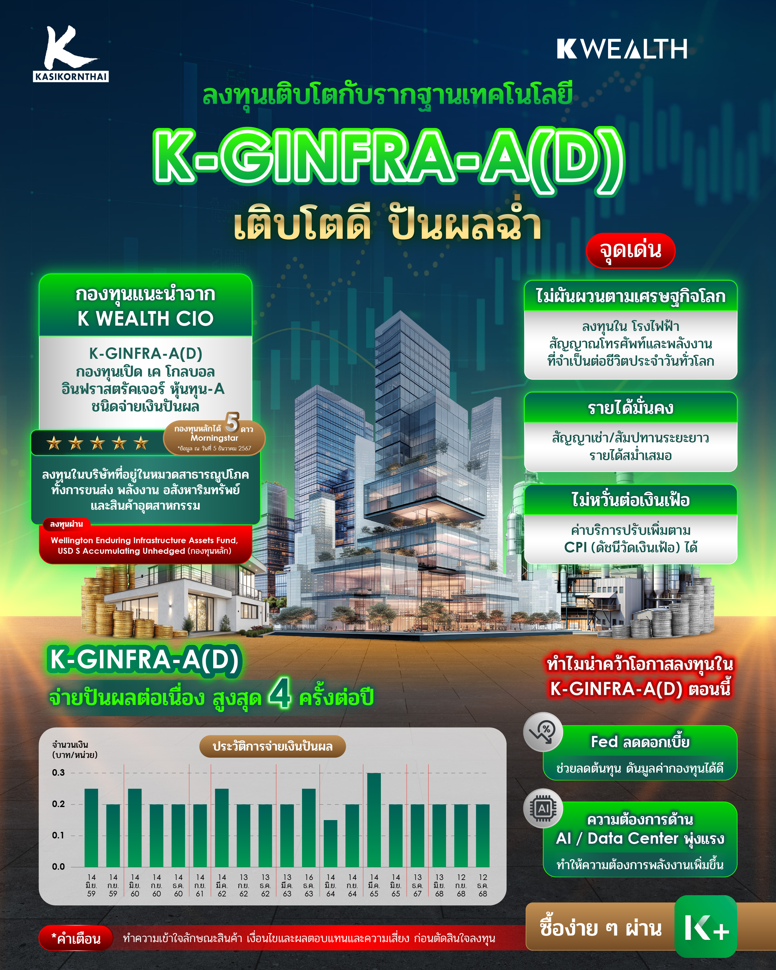รายละเอียดกองทุน K-GINFRA-A(D) เพิ่มเติม https://www.kasikornbank.com/th/personal/invest/mutual-fund/pages/k-ginfra-a(d).aspx