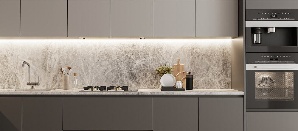 - ติดตั้งไฟ LED ใต้ตู้ครัว เพื่อเพิ่มบรรยากาศและความสวยงาม