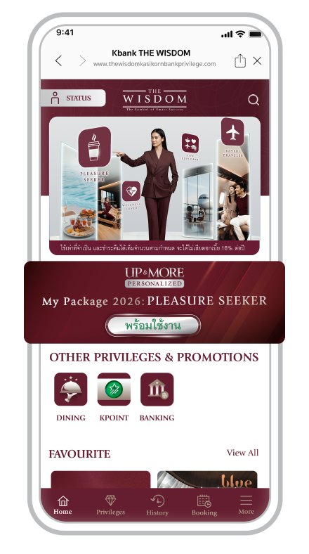 ทั้งนี้ลูกค้าเดอะวิสดอมกสิกรไทยยังคงได้รับสิทธิพิเศษหลัก ได้แก่ Banking Privileges และ Lifestyle Privileges ต่างๆ ซึ่งสามารถตรวจสอบได้ใน THE WISDOM PRIVILEGE BOOK 2026
