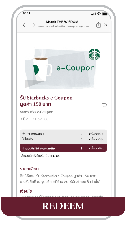 Starbucks e-Coupon 2 ครั้ง / เดือน |